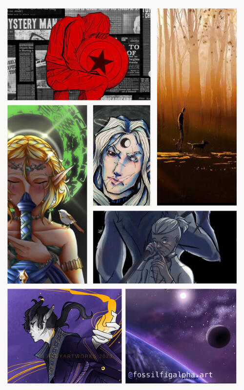 Another good friend, and artist I've learned a lot from. I've become better at anatomy and backgrounds, and they're artstyle and enthusiasm has inspired me to learn from other styles and even find online art courses.Fossilfigalpha
